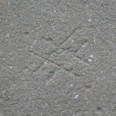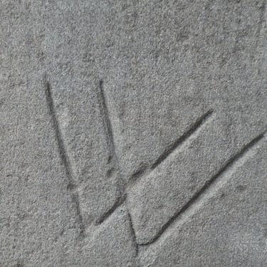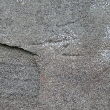 The arrow-shaped carving is a much later ‘bench-mark’, cut by the Ordnance Survey. It indicates the height above sea-level – 365ft in this case.
