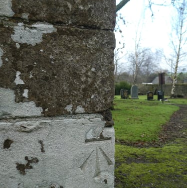 Coats of arms adorn the skewputts (top corner stones of the walls below the gable coping stones); they represent families connected with the church (Gray, Wemyss and Mortimer) while the arms of Scotland confirm Lord Gray’s allegiance to the crown and his position at court.