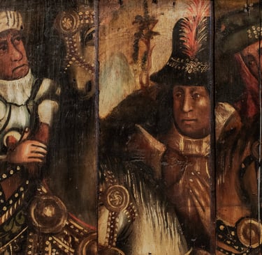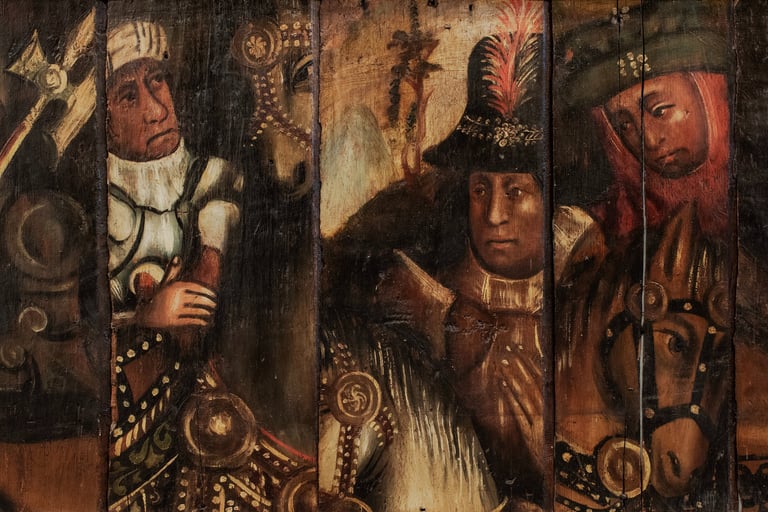 The paintings are on oak boards and are currently mounted on the walls of the church, though this was not their original location.