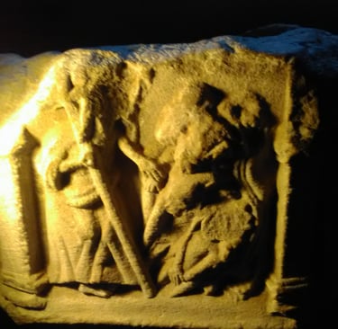 These stone basins, one on either side of the north and south entrances, held consecrated water which was used to purify the hands before entering the sanctuary.
